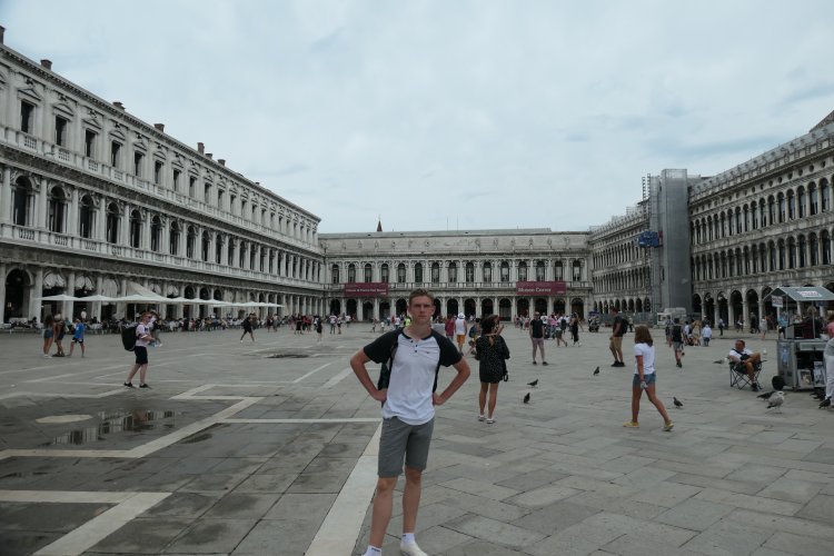 ….. und mit unserem Bild vor der Basilika auf dem Markusplatz von Venedig schließt die Tour, die wir mit unserem Startbild auf dem Münchner Marienplatz vor knapp 4 Wochen begonnen hatten