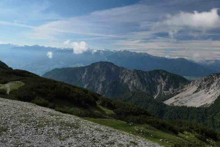 Nach einem kurzen Aufstieg von 350m Höhenunterschied zum Lafatscher Joch steht heute ein sehr langer Abstieg von knapp 1600m Höhenunterschied ins Inntal und in die Zivilisation nach Hall, östlich Innsbruck an.