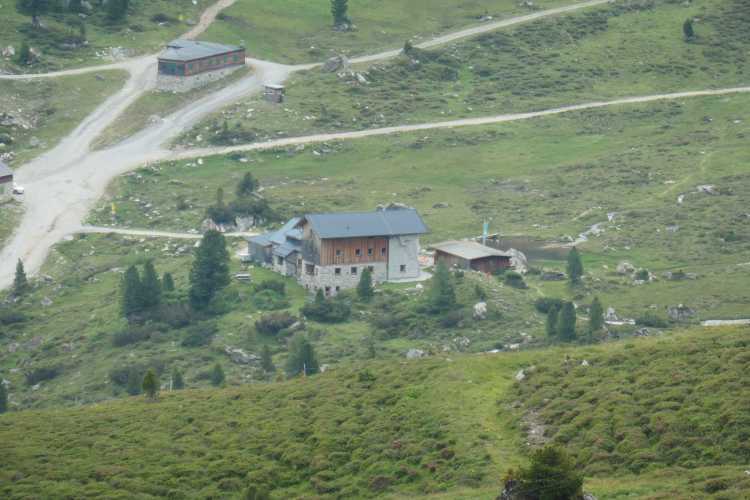 Ausblick von der Hüttenterrasse der Lizumer Hütte in den südlichen Talschluss zu unserem ersten Passübergang, den es morgen zu überschreiten gilt.