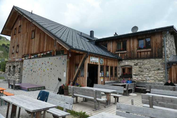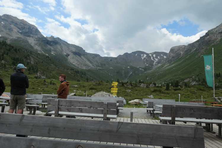 Nach Umziehen und einer heißen Dusche konnten wir anschließend sogar noch unseren Kaiserschmarrn (als Mittagessen) auf der Hüttenterrasse in der Sonne genießen.