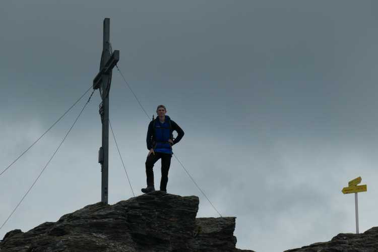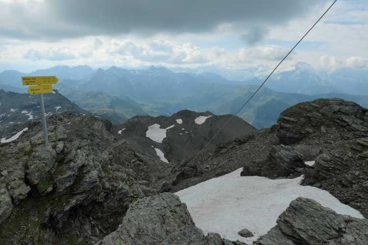 Einer der seltenen Wegweiser; hier auf dem Gipfel der Kreuzspitze