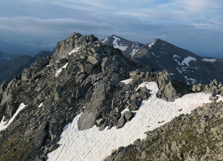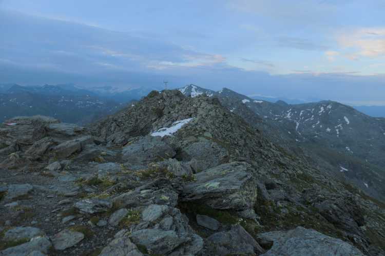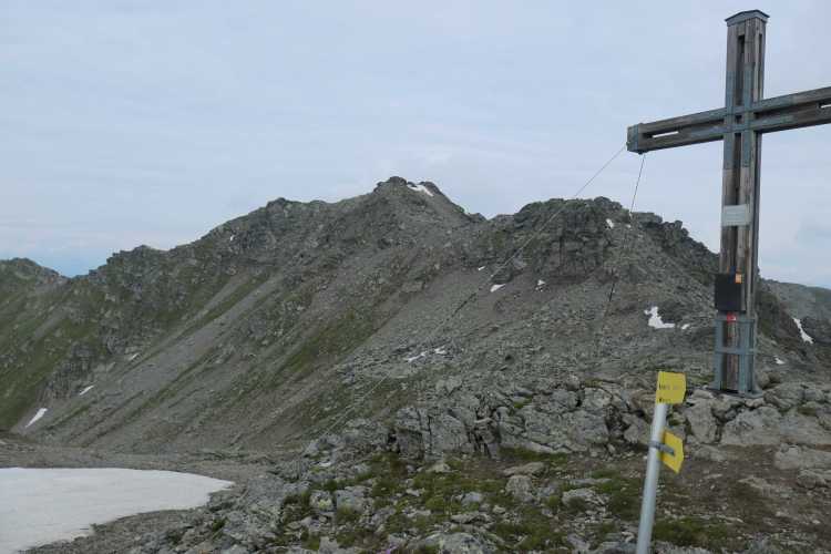 Die Alternative dazu war nur die hochalpine sogen. „Geierroute“ über 7 Gipfel am Bergkamm zwischen Glungezer und Naviser Jöchl. Für diese Tour sind bis zum Naviser Jöchl, wegen zahlreicher Kletterstellen mit Seilversicherung und grober Blockkletterei normal von der Glungezer Hütte 5,5h (+Pausen) zu veranschlagen. Bis zur Lizumer Hütte sind es anschließend nochmals ca. 3h in leichterem Gelände.