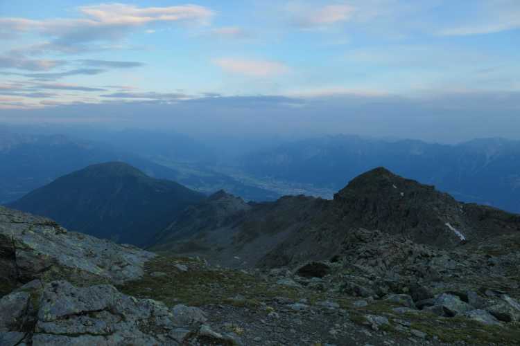 Wegen der Alternativlosigkeit der Wegführung zur Lizumer Hütte blieb uns also nur ein sehr früher Start, um bis 13h wenigstens am Naviser Jöchl zu sein, da die durchgängig blitzgefährdeten Bergkämme vorher dann in jedem Fall hinter uns liegen mussten.