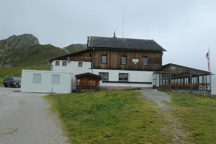 Das Tuxerjochhaus (2303m) –unser heutiges Ziel– auf dem gleichnamigen Joch