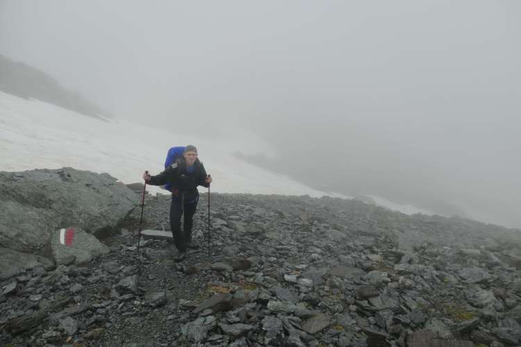 ….auf dem Geierjoch: Neblig, windig, und regnerisch bei +5 Grad (im Hochsommer!)