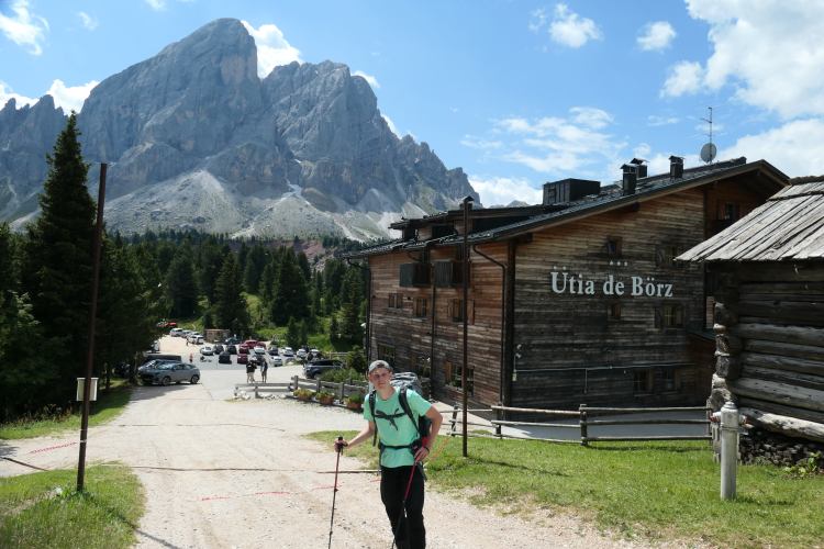 An der Würzjoch Hütte (hier mit ihrer ladinischen Bezeichnung „Ütia de Börz„) am gleichnamigen Pass