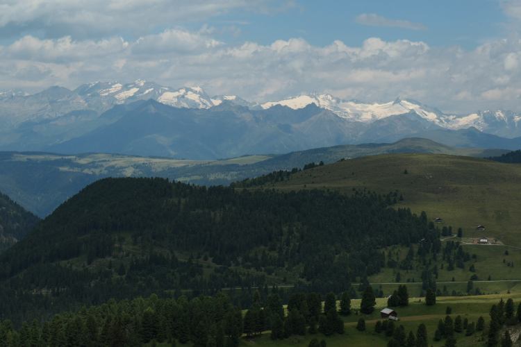 Blick von den Höhen der Lüsener Alm nach Südosten in die Dolomiten südlich vom Kronplatz (Bruneck)