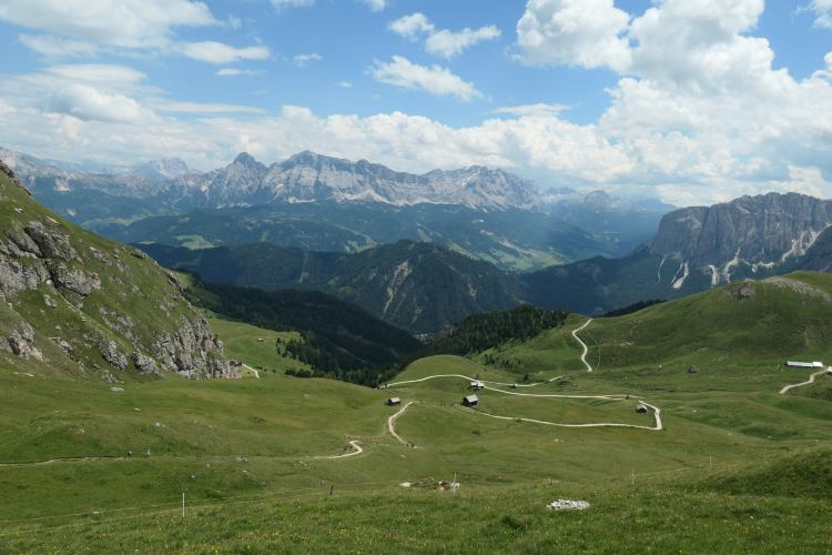 Blick aus Südwesten zurück zu Peitlerkofel und Peitlerscharte