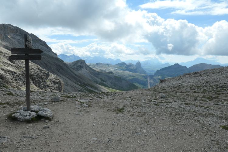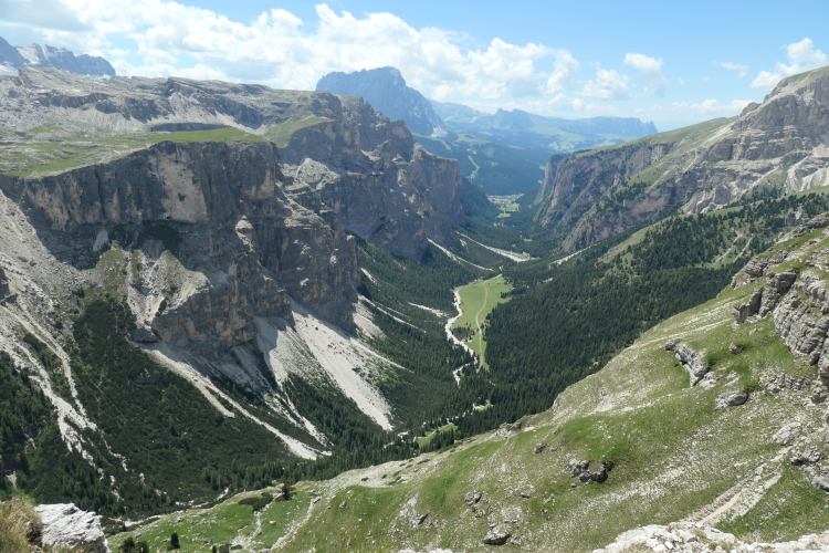 An der Puezhütte (2475m): Blick ins Langental nach Wolkenstein