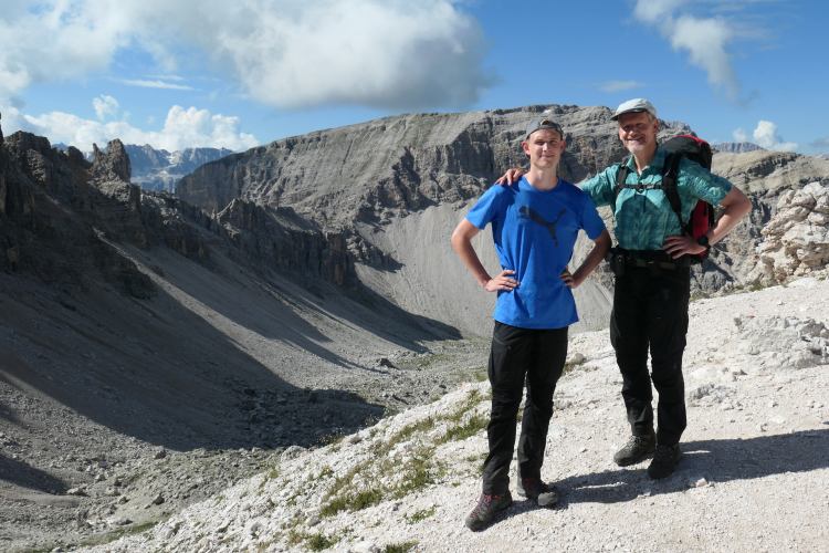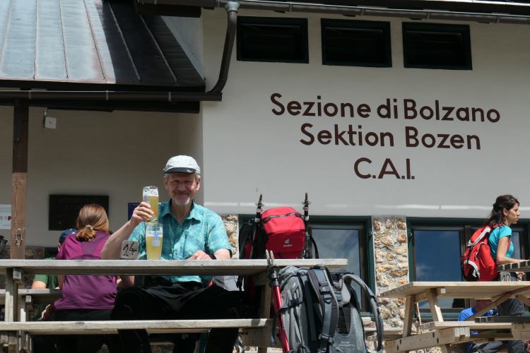 In der Puezhütte (2475m) hatten wir (nur) ein Mehrbettzimmer, dafür aber zusammen mit einem jungen Lehrerpaar (Simona u. Volker) aus dem südlichen Rheinland-Pfalz, mit denen wir schon seit den Tuxer Alpen zusammen gewandert sind.