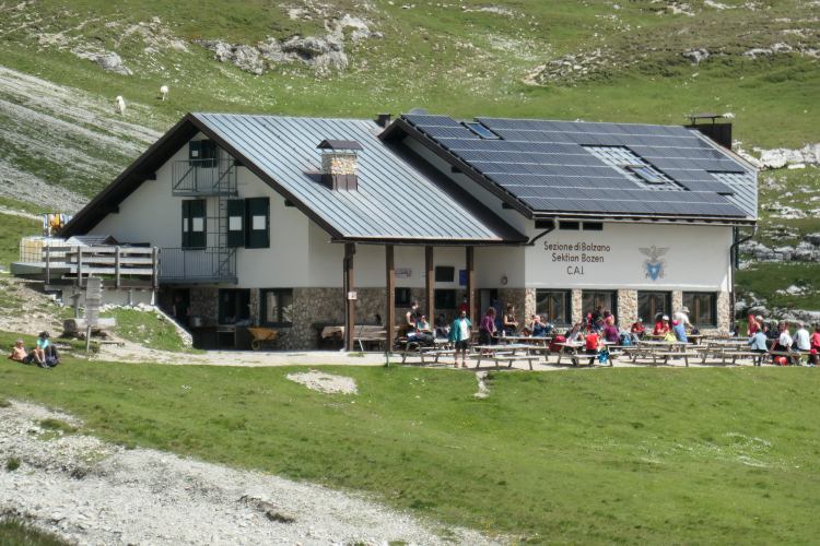 Die Puezhütte war um die Mittagszeit –wie bei italien. Hütten häufig– extrem stark von Tagesgästen frequentiert, so dass man sich fast vorkam, wie in der Großstadt. Da die Hütte aber wieder einmal kein Mobilfunk-Netz verfügbar hatte, musste unsere Blog-Aktualisierung hier zunächst wieder etwas warten.