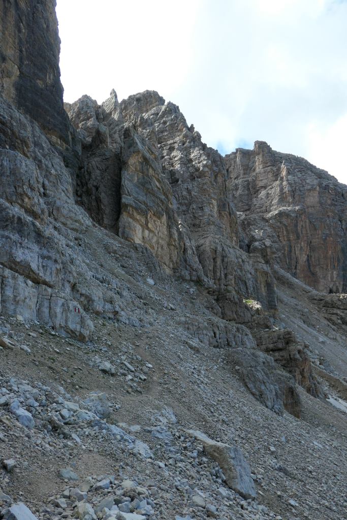 …. und wie immer jede Menge Dolomitenschotter, auf dem es –wenn man nicht aufpasst- schnell, wie auf einem „Kugellager“ abwärts gehen kann.