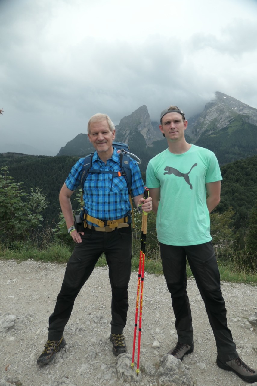 Nach einer schauerlich-gewittrigen Vorbereitungswoche in Ruhpolding ging es heute bei (immerhin) trockenem Wetter los: Start war in Schönau bei Berchtesgaden und erstes Zwischenziel war der Gipfel des „Grünstein“ mit herrlichem Blick hinunter auf Berchtesgaden und Teile des Königssees.
