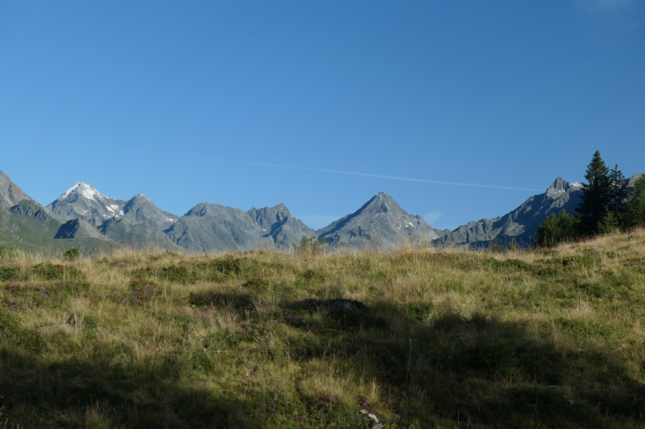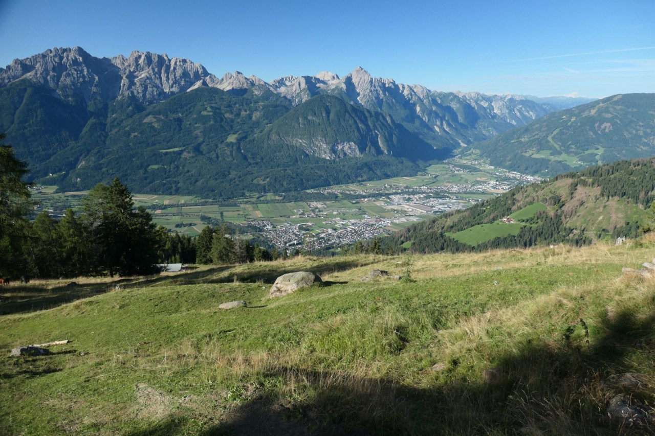 Schon nach wenigen Minuten auf dem sogen. „Grenzweg„, der immer auf dem Kamm zwischen Kärnten und Osttirol verläuft hatten wir den ersten schönen Blick auf das breite Tal der Drau in Richtung Lienz und auch auf die Lienzer Dolomiten.