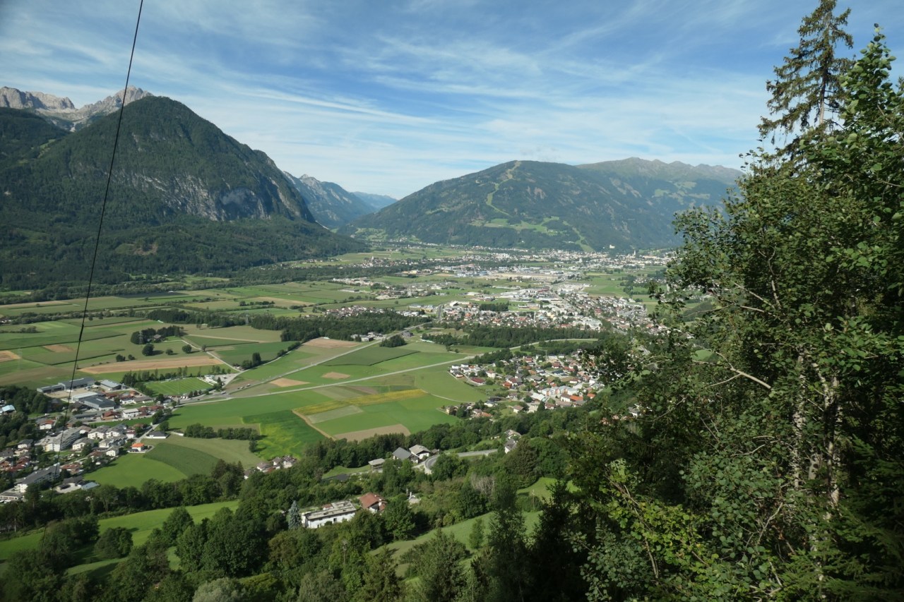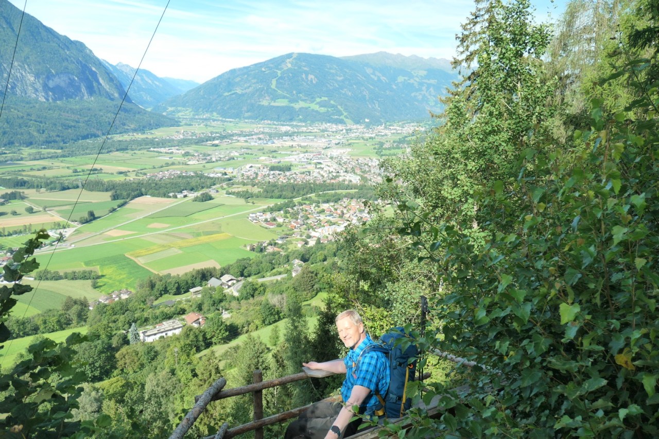 Die Stimmung war bei dem wunderbaren Wetter natürlich sehr gut und unser Tempo abwärts fast noch schneller als gewohnt; wir „alarmierten“ daher schon vorsorglich Ines, dass es wohl eher als 12:00h in Lienz werden würde. Die schönen Aussichten, wie z.B. in Iselsberg oder die Sehenswürdigkeiten am Weg, wie z.B. den „Römerweg“ zur alten Römersiedlung nach Aguntum (unten im Drautal bei Stribach), waren dennoch immer einen Halt und/oder wenigstens einige schöne Fotos wert.