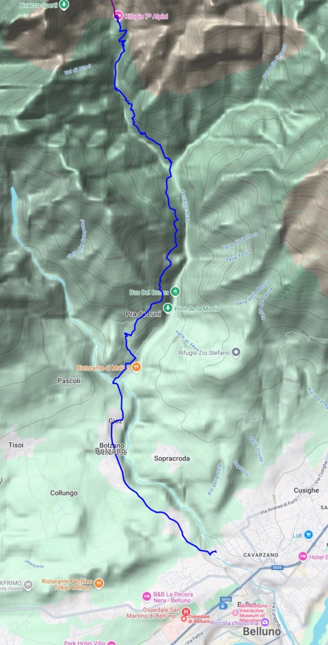 Etappe-21: Rif. 7mo Alpini – Belluno: „Auslaufen“ zurück in die Zivilisation nach Belluno