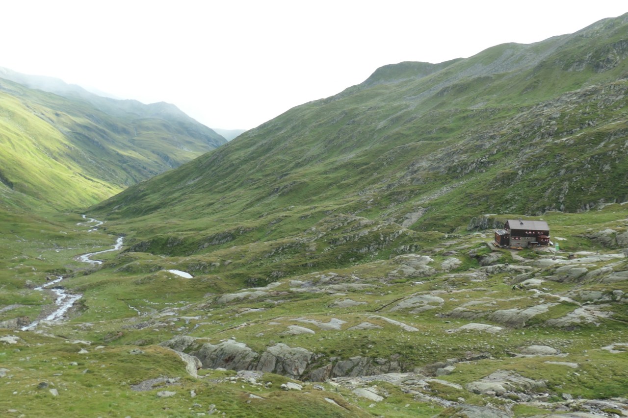 Kaum hatten wir die Gößnitzscharte passiert, war über dem hintersten Debanttal erfreulicherweise auch schon etwas Sonnenschein und blauer Himmel sichtbar und als wir schließlich die Lienzer Hütte auf 1977m Höhe erreicht hatten, war es im dortigen Sonnenschein bereits angenehm warm. So konnte es bleiben – und so ging es auch weiter auf dem Weg zum Wangenitzsee, auch wenn es in der Nähe der Unteren Seescharte (2533m) wieder sehr windig wurde.