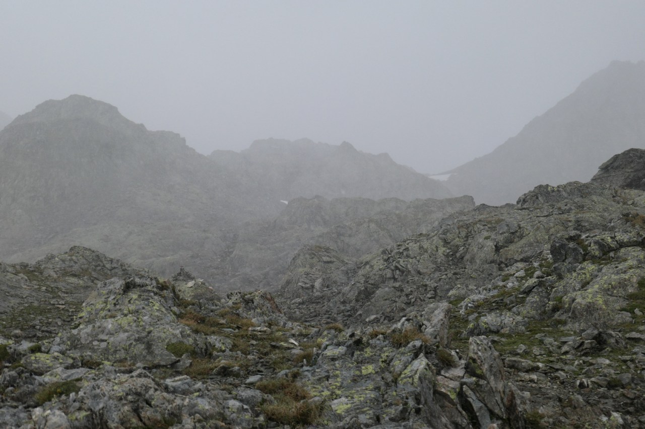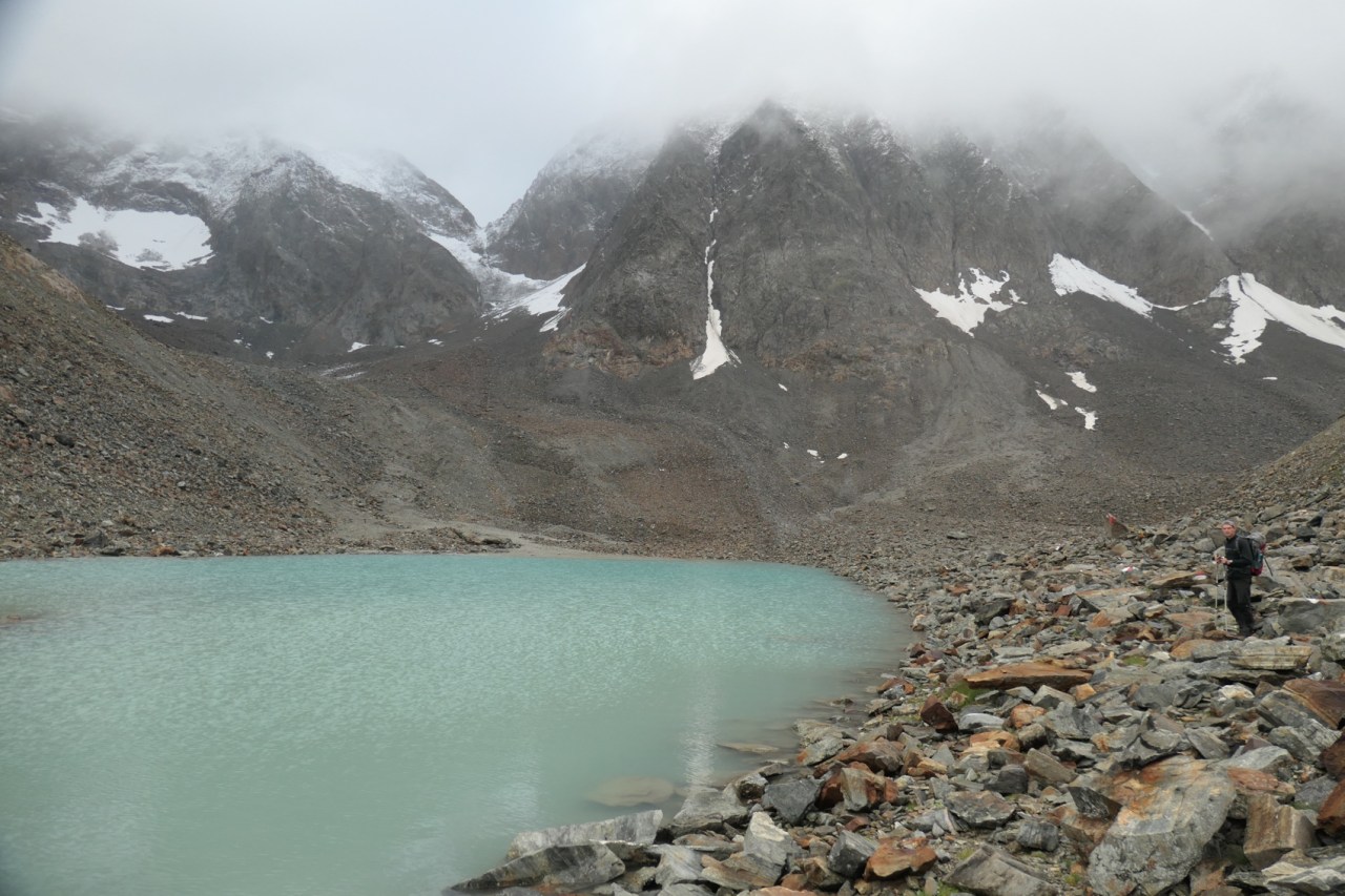 8.Etappe nach Lienz: Bei 0 Grad und zeitweise leichtem Schneefall ging es heute morgen von der Elberfelderhütte los, um über die Gößnitzscharte (2737m) und abwärts zur Lienzer Hütte (1977m) zur Wangenitzseehütte (2508m) zu laufen, die wir über die Untere Seescharte (2533m) zu erreichen planten.