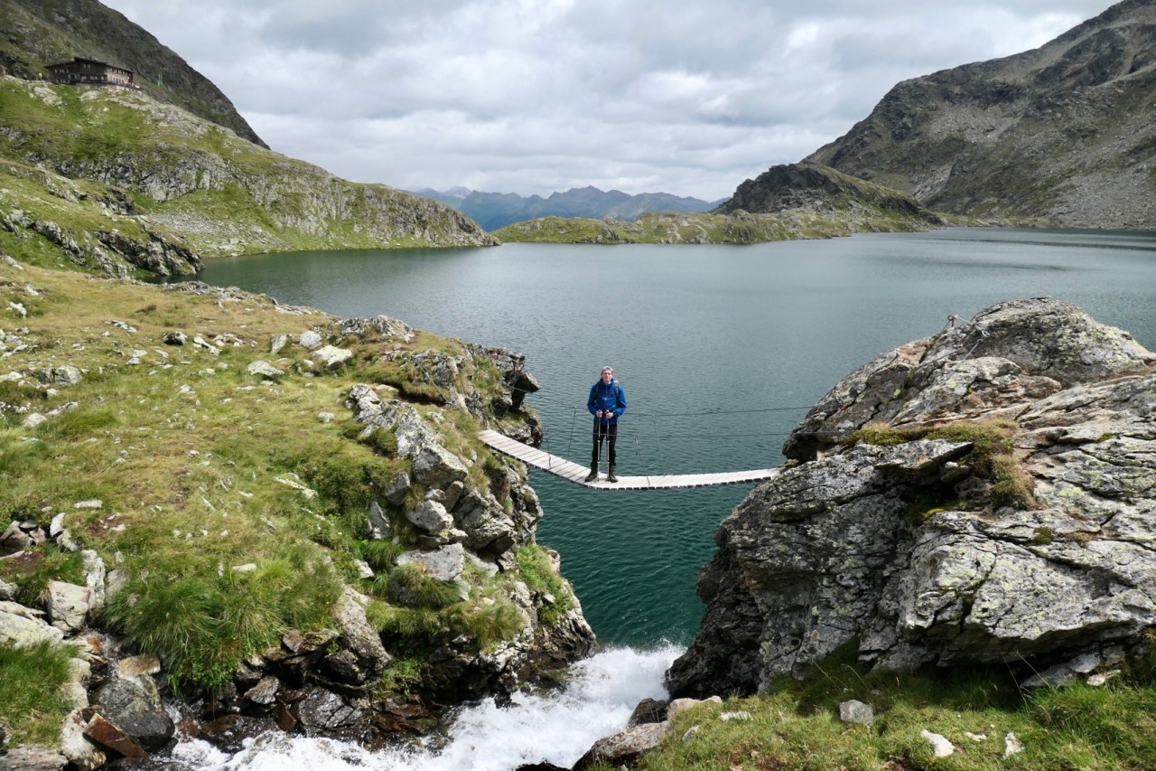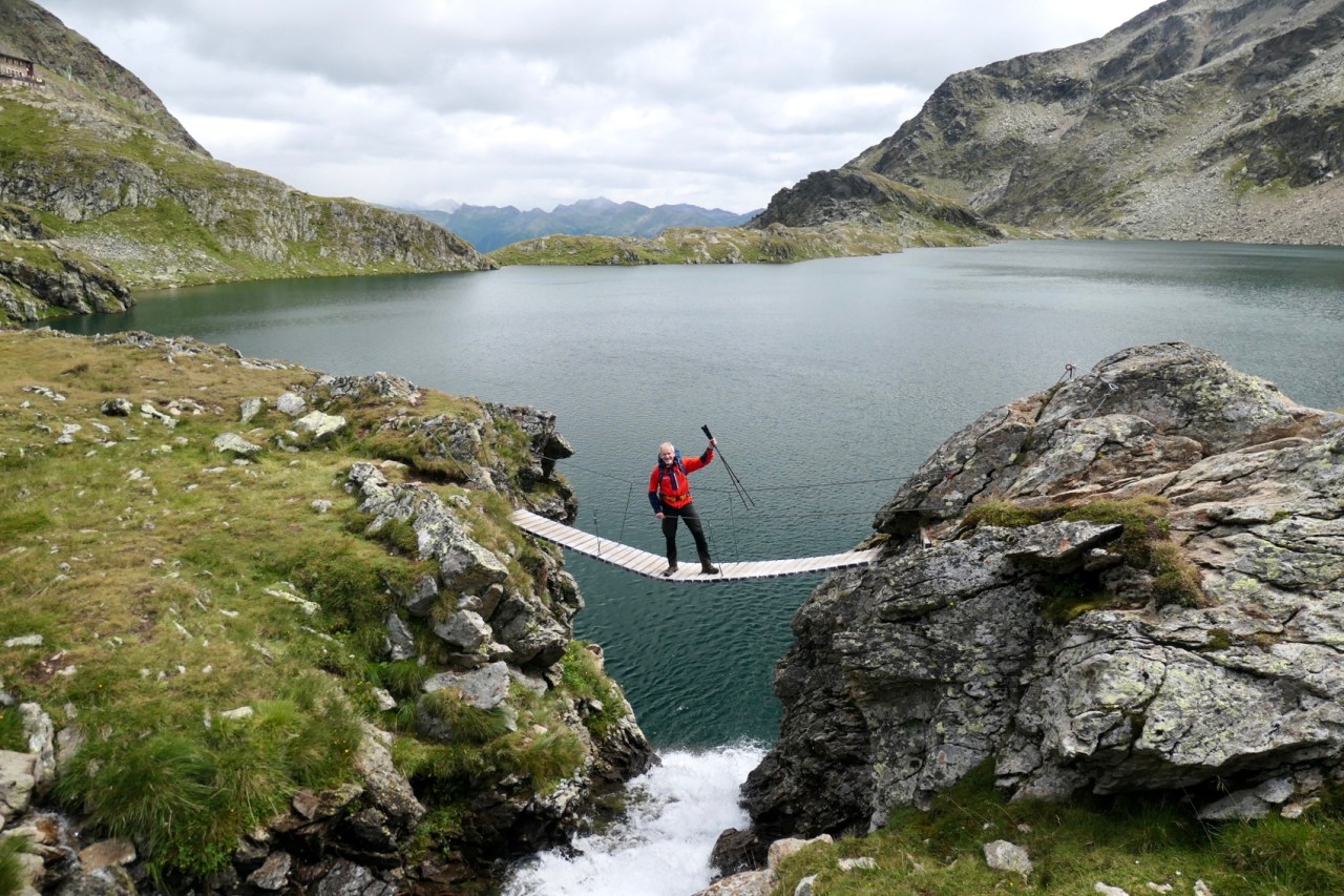 Von der Seescharte war es dann nurmehr ein „Katzensprung“ von ca. 20min bis zur Wangenitzseehütte auf 2508m; ein Weg, den wir aber nicht zurücklegten, ohne vorher die einzigartige Hängebrücke über den Wildbach zu besuchen, die den etwas höher liegenden Kreuzsee mit dem Wangenitzsee verbindet. Eindrücke unserer heutigen Etappe sind wieder den nachfolgenden Bildern zu entnehmen.