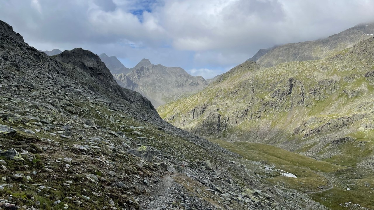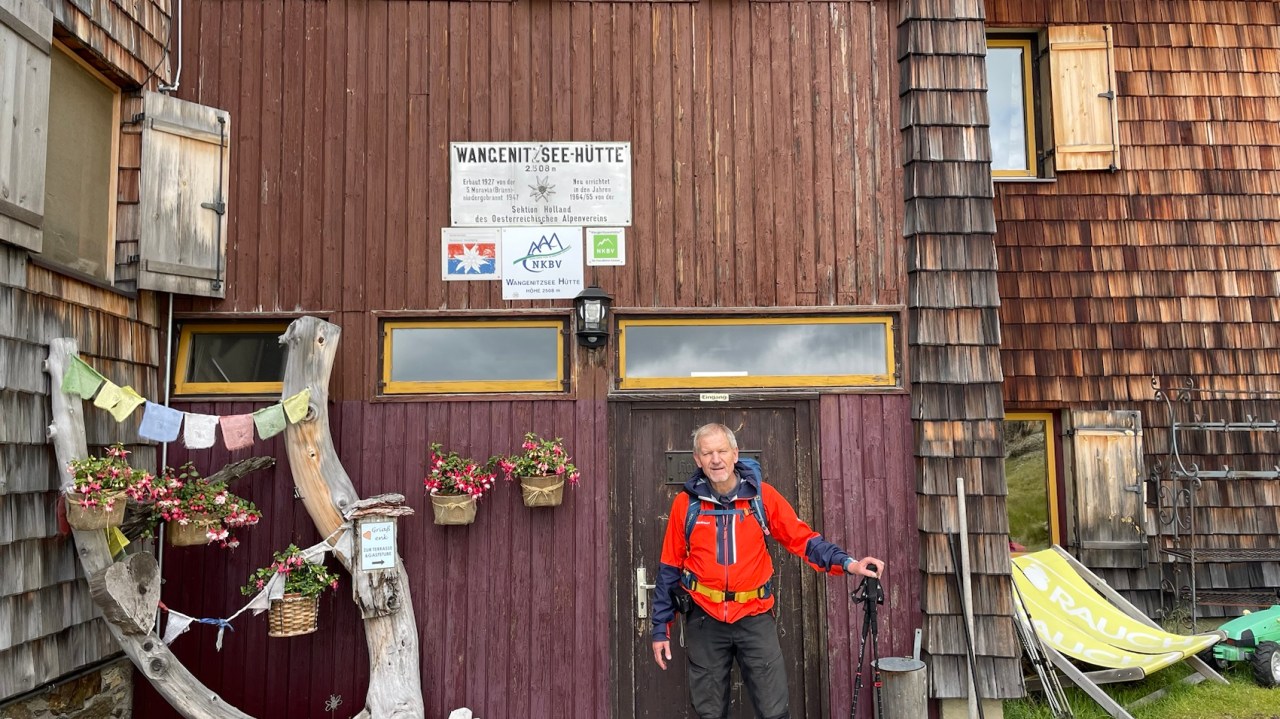 Rückblick auf die äußerst gastliche Elberfelder Hütte nach unserem Start heute morgen gegen 08:15h.Die Wetterverhältnisse hatten sich im Vergleich zu gestern heute früh bereits deutlich gebessert, so dass bereits sonnenverwöhnte Talabschnitte erkennbar waren. Das machte bereits zum Start viel Mut für unsere heutige Etappe zum Wangenitzsee.Am Gößnitzsee, etwa 200 Höhenmeter oberhalb der Elberfelder Hütte. Der (erkennbare) gestrige Neuschnee hielt sich in Grenzen, lag aber auch erst oberhalb ca. 2700m Höhe. Carsten kurz vor Erreichen der Gößnitzscharte. (2737m) Der starke und in Böen sehr stürmische Wind war hier bereits sehr unangenehm, so dass wir auf Pausen verzichtetenDie Scharte (markiert mit einem kleinen Kreuz) ist erreicht Carsten hochzugeknöpft bei den heutigen Bedingungen. Bei genauem Hinsehen kann man den Schneefall bzw. Graupel vor seiner Jacke an den weißen Streifen recht gut erkennenRückblick zur Gößnitzscharte: Man erkennt, dass die Bedingungen hier heute nicht wirklich zu einer Rast einludenAuf der Westseite der Gößnitzscharte ging es hier zügig ins hinterste Debanttal hinab, dass uns zudem mit etwas Sonnenschein und blauen Himmel begrüßteRechts der Bildmitte ist hier bereits die Lienzer Hütte (1977m) in der Sonne erkennbar. Ab hier geht es wieder aufwärts zur Seescharte, von der uns hier noch knapp 600 Höhenmetern trennten.Ab hier geht es wieder aufwärts: Wegweiser zur Wangenitzseehütte kurz oberhalb der Lienzer HütteDie letzte „Hürde“ vor unserem heutigen Tagesziel am Wangenitzsee ist fasst erreicht: Noch ca. 100m Höhe bis zur Unteren Seescharte, auf der sich der Tragpfosten der Materialseilbahn für die Hütte befindet.Auf der Seescharte öffnet sich unmittelbar der Blick auf den nahen Kreuzsee (links) und den Wangenitzsee mit der gleichnamigen Hütte etwas oberhalb.Der kleine Umweg über die beeindruckende Hängebrücke vor dem Wangenitzsee musste sein…………natürlich für uns beide!Rückblick zur „Unteren Seescharte“ von der Terrasse der Wangenitzsee-HütteAnkunft heute an der herrlich gelegenen Hütte am WangenitzseeAm Abend auf der Hüttenterrasse in Richtung Obere Seescharte