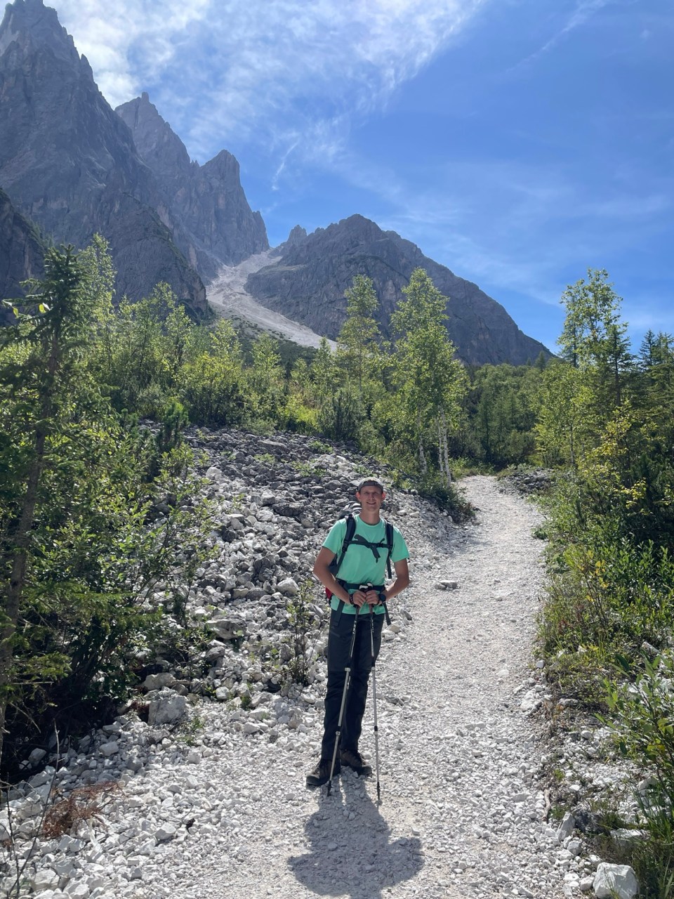 Die Etappe führte uns bei herrlichem Wetter zunächst zur Steinbergalm und kurz darauf zur bewirtschafteten Sylvesteralm. Unser weiterer Abstieg ins Pustertal war dann zwar etwas Wegsuche (ohne GPS nahezu unmöglich), führte aber dennoch zügig und sehr steil hinab. Das Pustertal ließen wir danach aber sehr schnell schon wieder in Richtung Sexten hinter uns und gelangten so schnellen Schrittes ins Innerfeldtal und zur Dreischuster-Hütte, unserem heutigen Tagesziel.